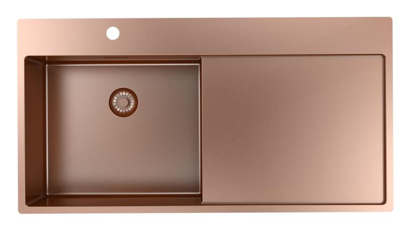 Pure.Sink Exclusivo Koperen spoelbak met afdruipgedeelte 100x52 cm Tapwing links PEX47100LT-62
